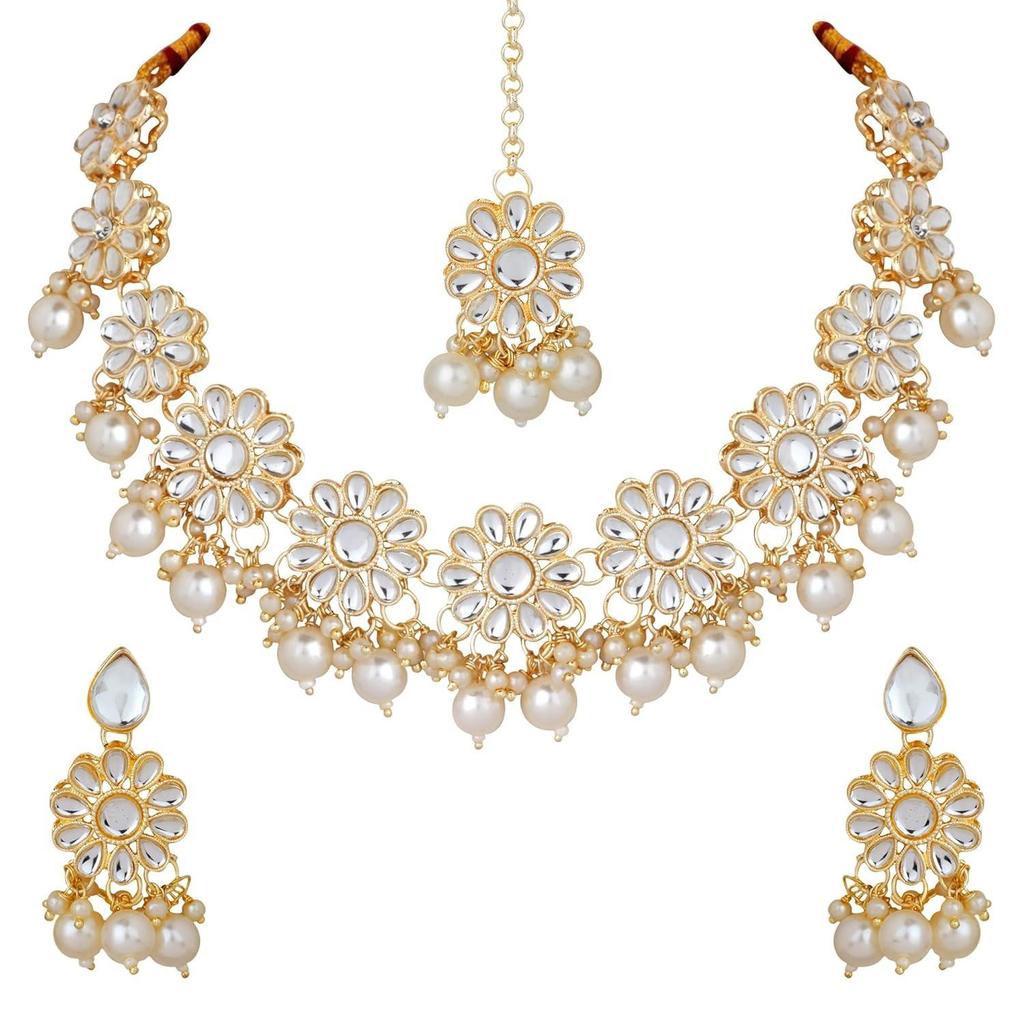 Традиционный набор ожерелья Кундан из белого жемчуга | Чокер Кундан | Нарядные украшения с серьгами и маанг тиккой для женщин и девушек — купить товар онлайн с бесплатной доставкой по всему миру!