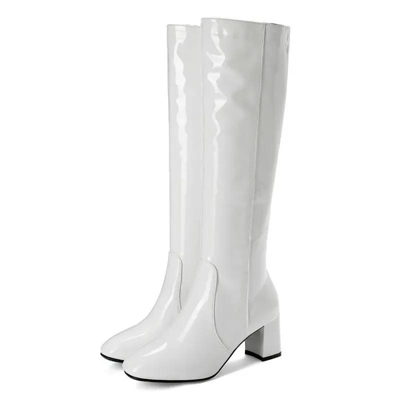Женские сапоги на Хэллоуин, модные сапоги, косплей, белые, красные, до колена, сапоги для женщин, большие размеры, лодочки на молнии, туфли на высоком каблуке