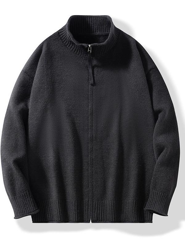 Весенне-осенний кардиган на молнии со стойкой воротником, новый стиль, мужской молодежный повседневный модный свитер, однотонный теплый вязаный свитер