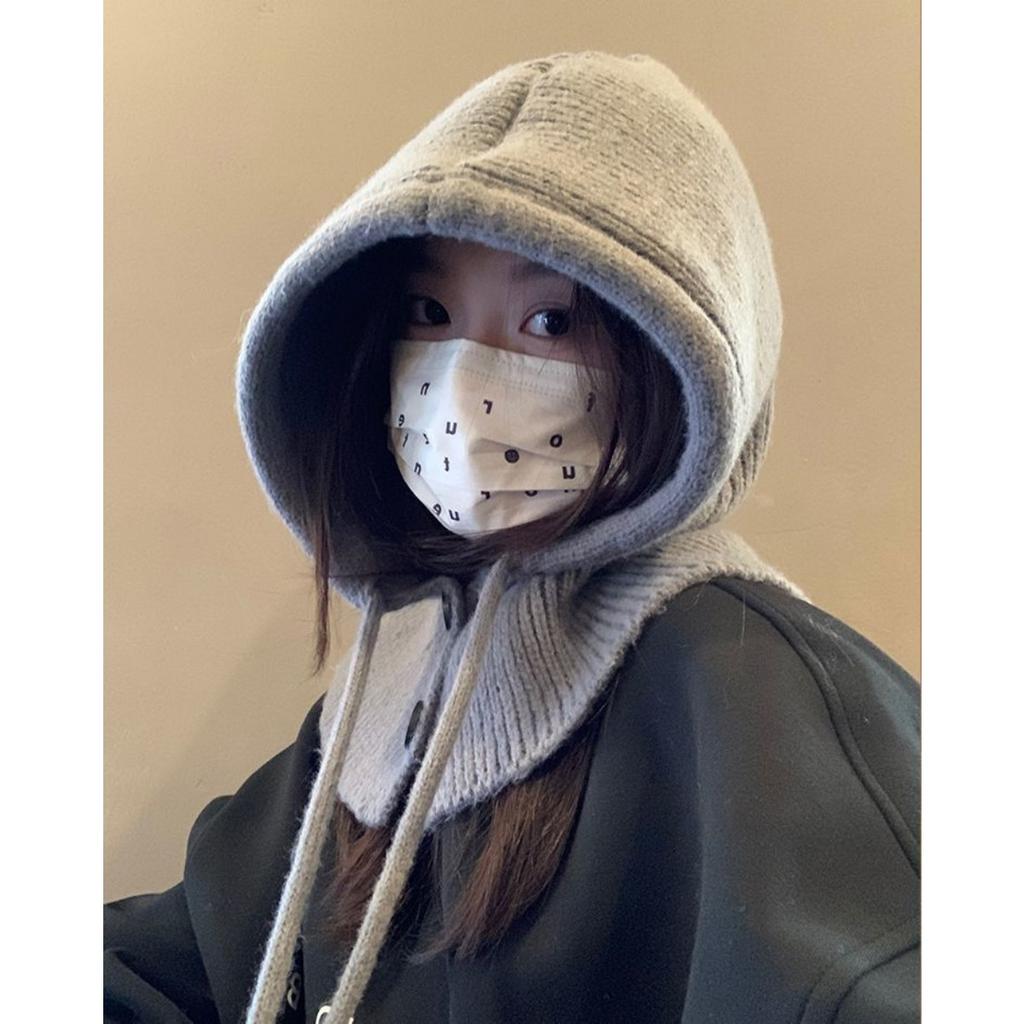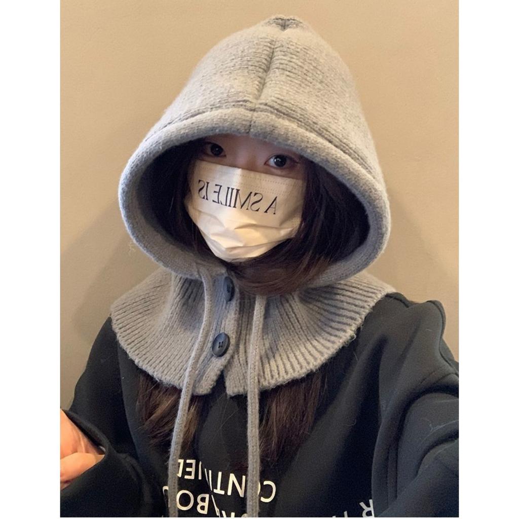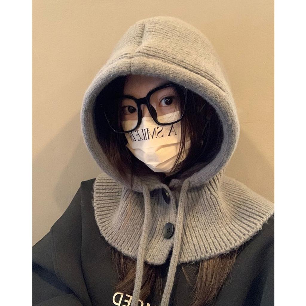Осень и Зима, Шапка, Женская Шапка, Зимняя Шапка, Встроенный Шарф, Защита Ушей, Шерстяная Шапка, Вязаная Шапка, Теплая Шапка