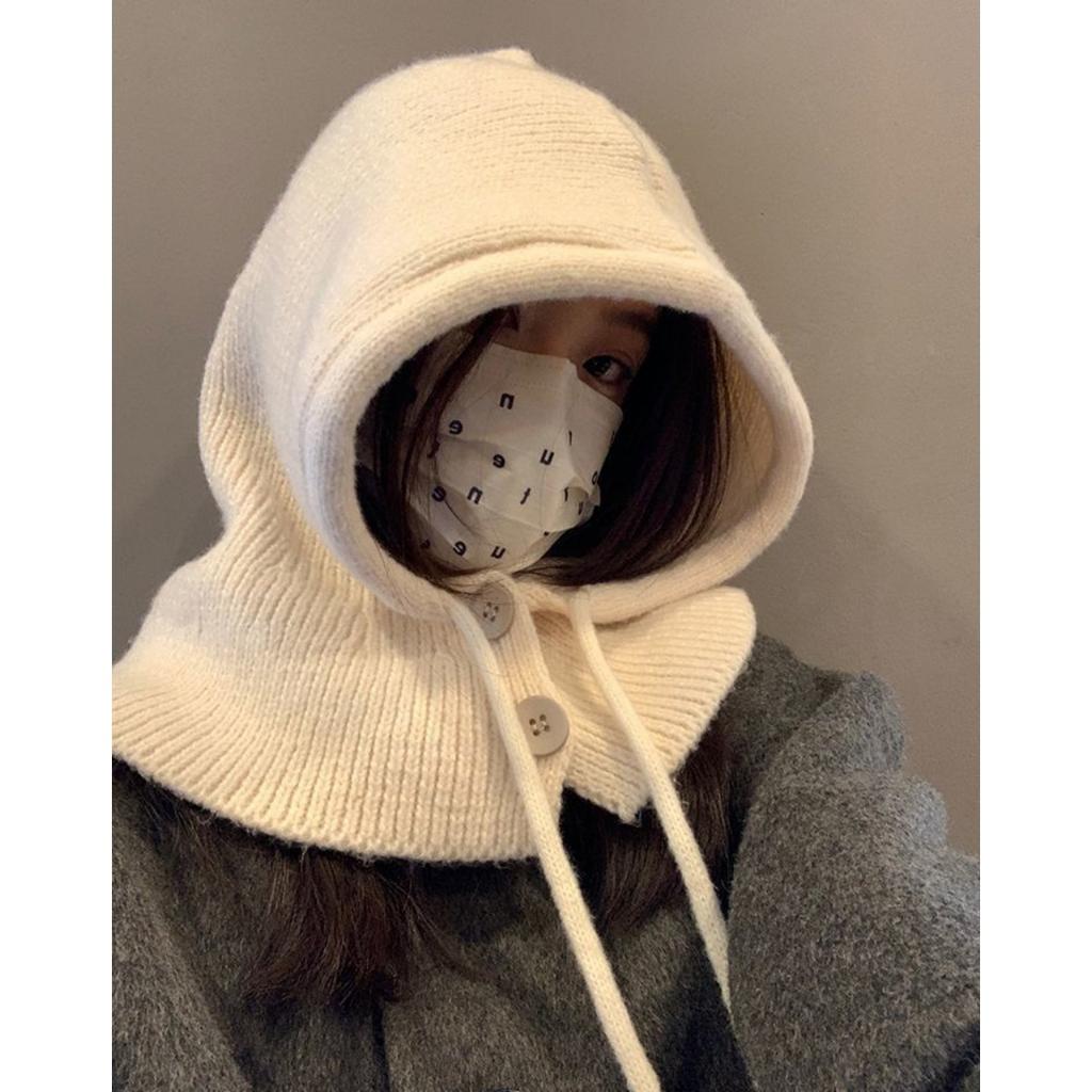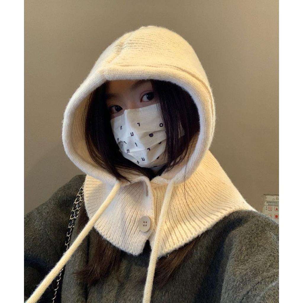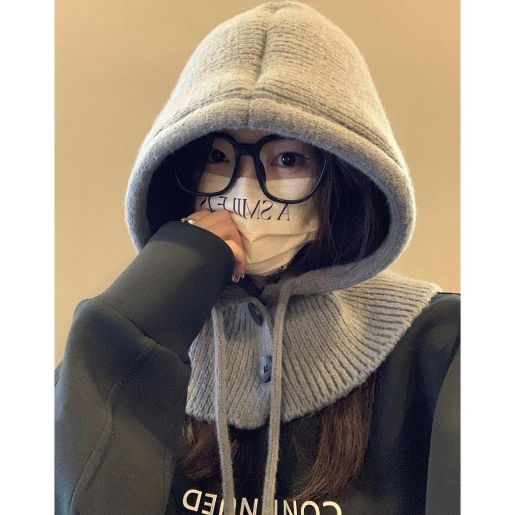 Осень и Зима, Шапка, Женская Шапка, Зимняя Шапка, Встроенный Шарф, Защита Ушей, Шерстяная Шапка, Вязаная Шапка, Теплая Шапка