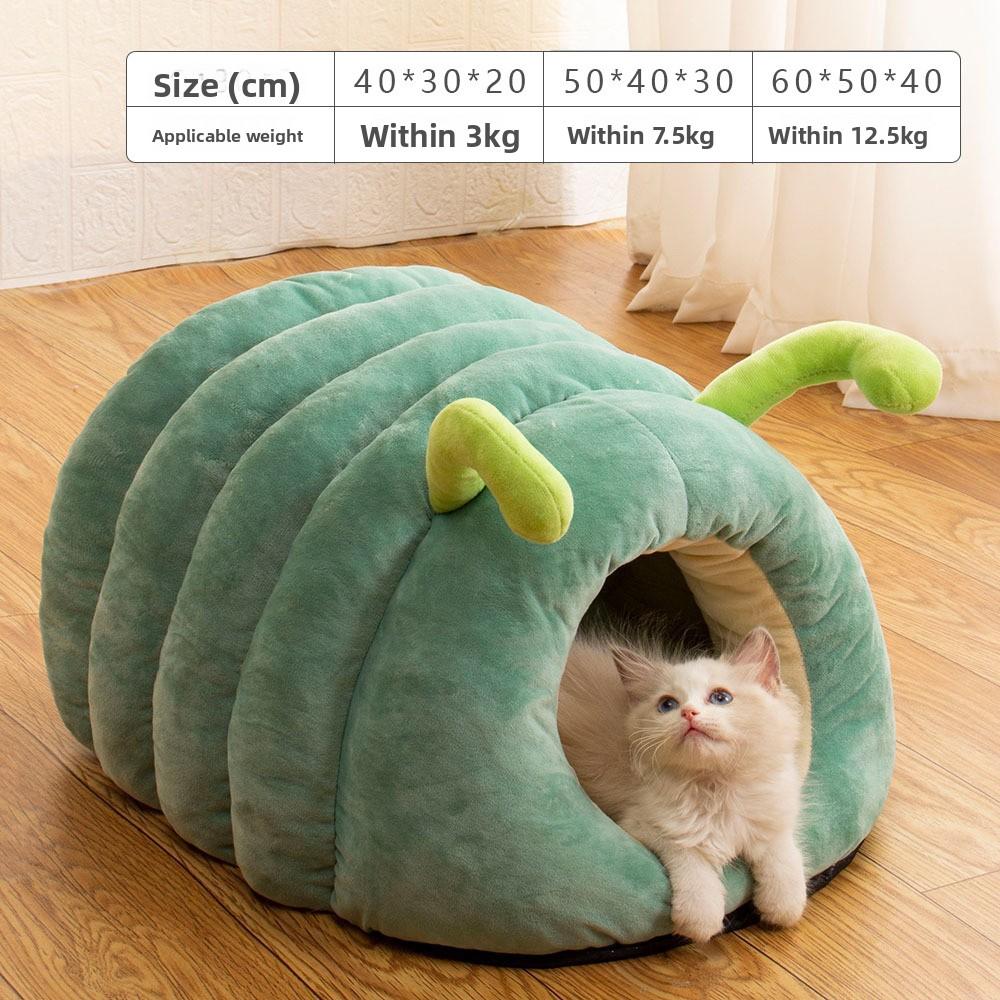 Гусеница Домик для питомца Зимнее теплое гнездо для кошки Милый домик для собаки Закрытое Нескользящее гнездо для кошки