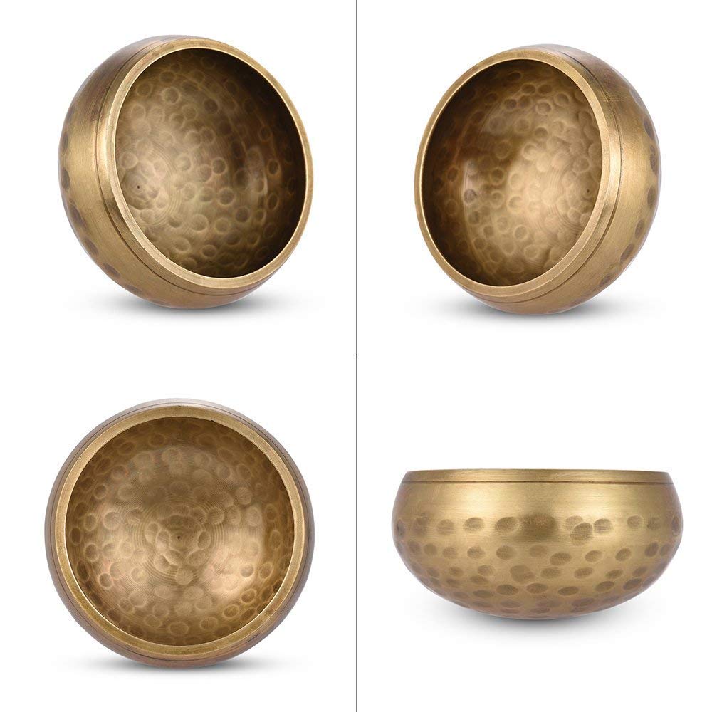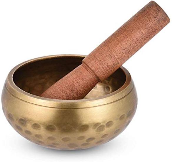 Латунная медитационная поющая чаша с деревянным традиционным кованым непальским буддийским молитвенным медным молотком, Стиль, Отделка, Чаша,