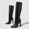 Осень Зима Мягкая Кожа Высокие Каблуки Сапоги до Колена Женская Мода Острый Носок Вечерние Туфли Обувь Zapatos De Mujer