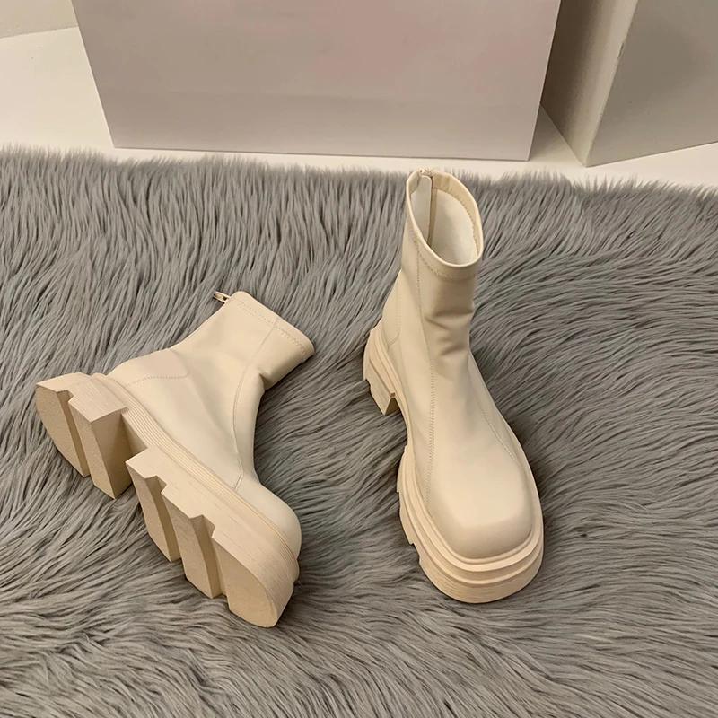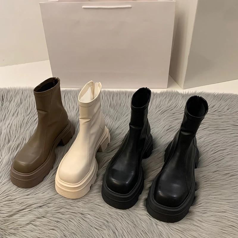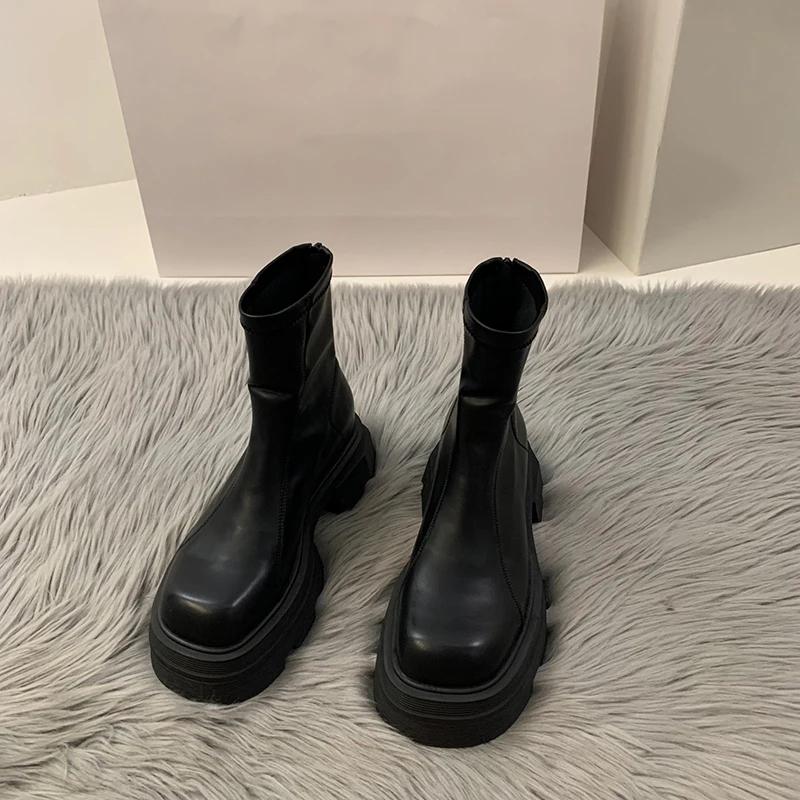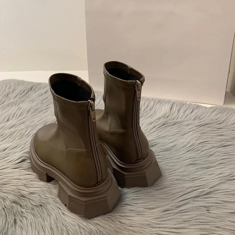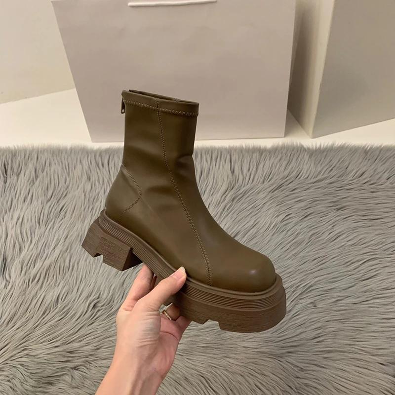 2024 Новые короткие сапоги на платформе и каблуке, женская мода, женские ботильоны с молнией сзади, осень-зима, женская обувь