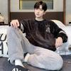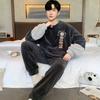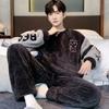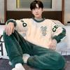 Зимняя одежда, коралловый флис, пижамы, мужская одежда, утепленный флис, круглый вырез, брюки с длинными рукавами, костюмы, домашняя одежда