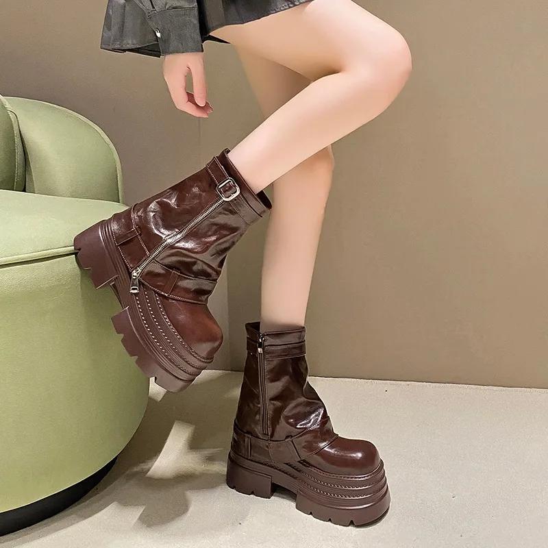 Женские кожаные ботинки на каблуках и платформе высотой 10 см, осенне-зимние, армейские ботинки, новые нескользящие ботинки для мотоциклистов, женские панк-ботинки