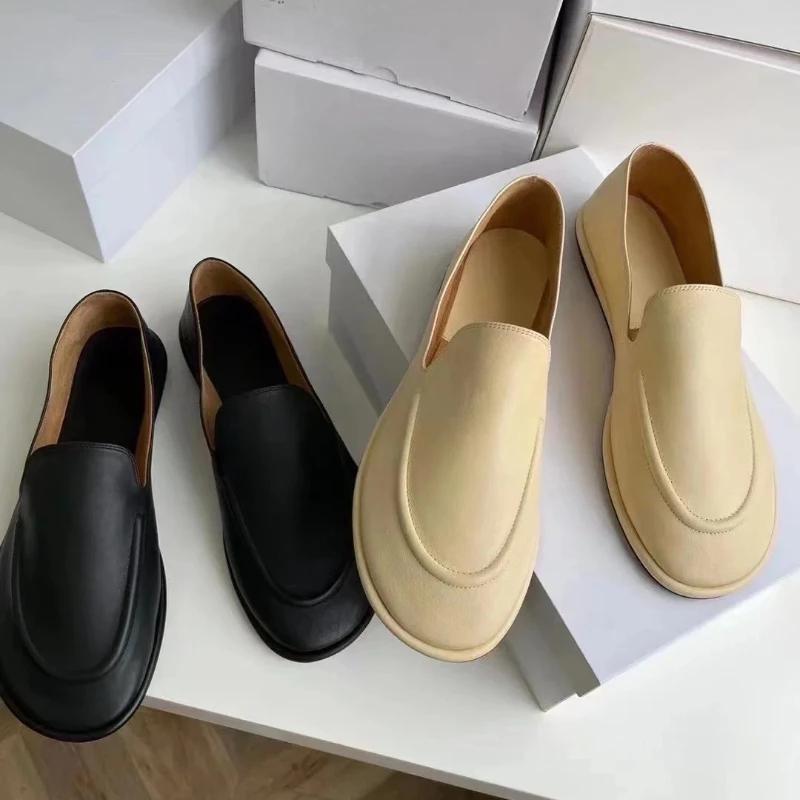 Лоферы Женская обувь 2025 Новая Весна Круглый носок Слипоны Маленькие кожаные туфли Повседневные Мягкая кожа Плоские мюли