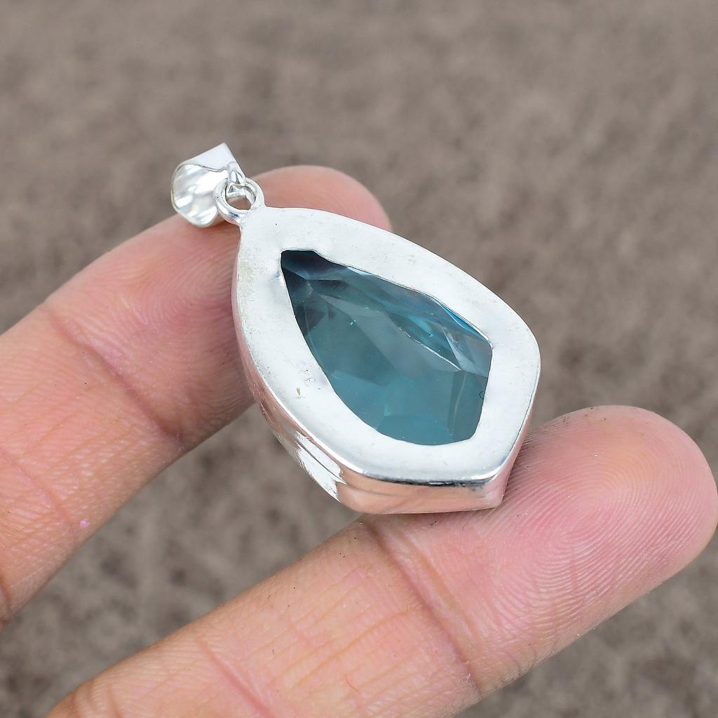 Драгоценный камень Голубой топаз Ручная работа Серебро 925 пробы Ювелирная подвеска 1,77" KKG-23
