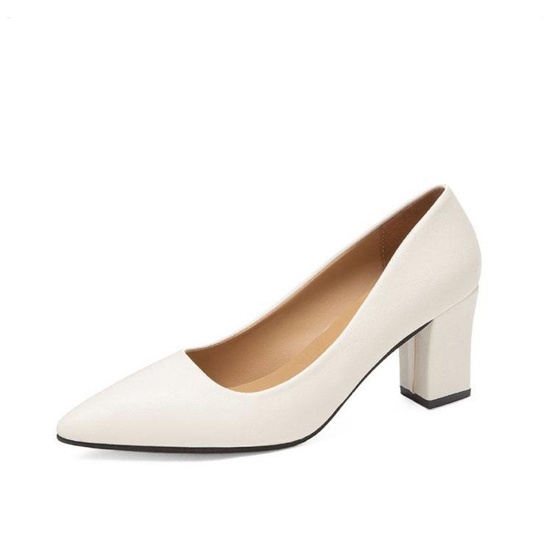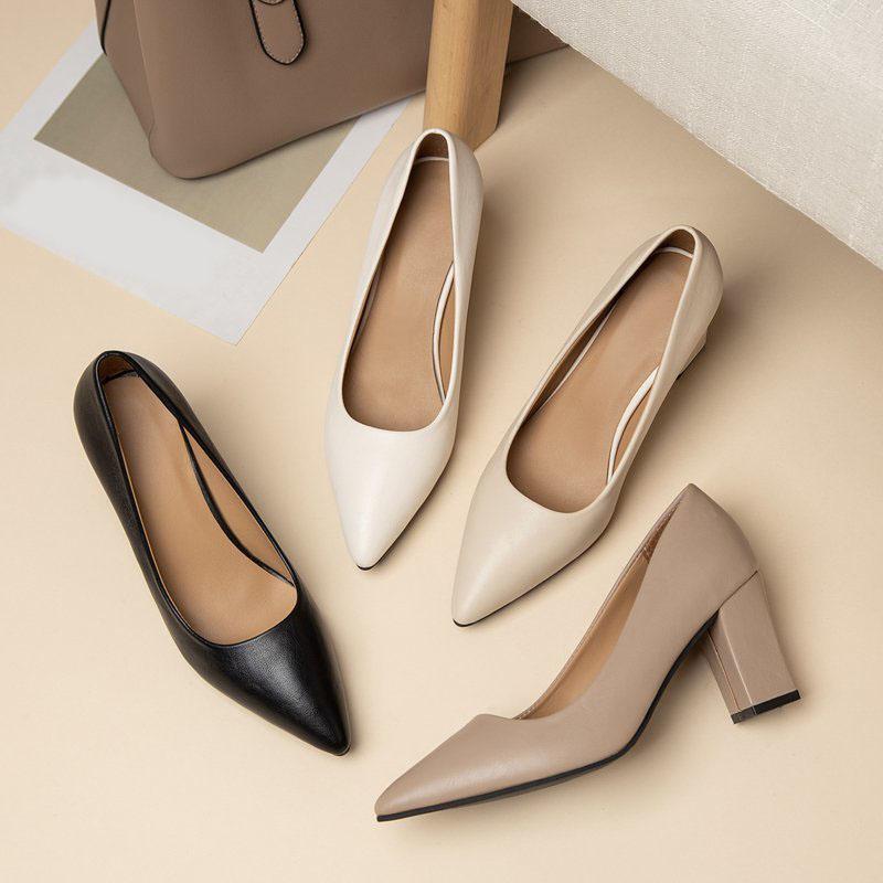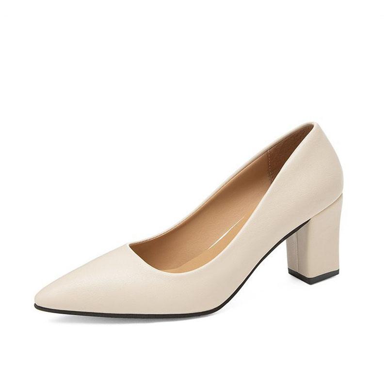 Женские каблуки Женская обувь Массивный каблук Женские туфли-лодочки Офисные женские рабочие туфли Однотонные с острым носком Туфли для платья Весна Осень WSH4845