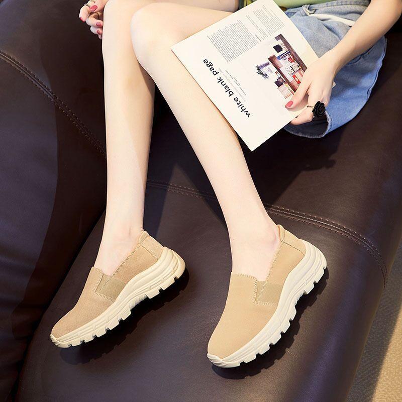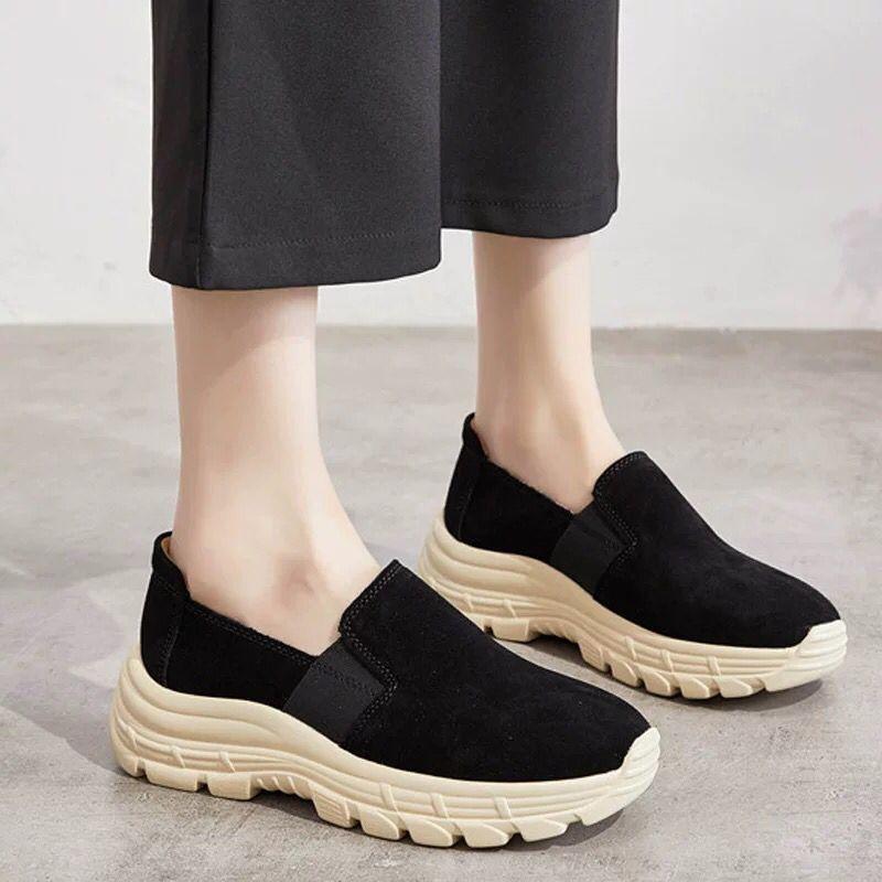 Модная осенняя женская обувь на платформе, замшевая кожа, толстая подошва, лоферы, слипоны, женские повседневные кроссовки для бега WSH4374