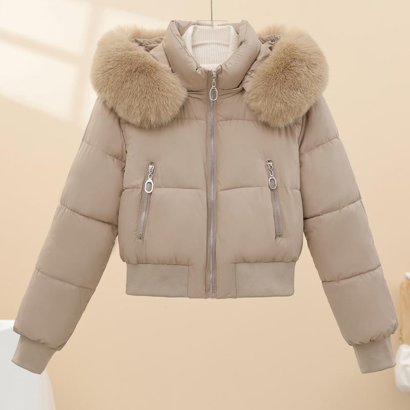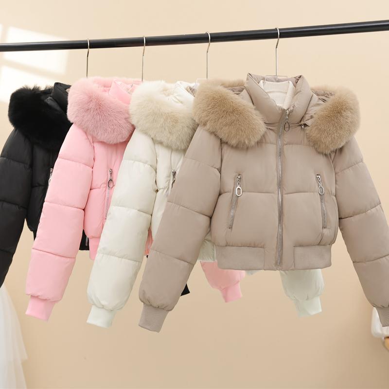 Модные зимние женские пальто с капюшоном, воротником из искусственного меха, толстые теплые короткие парки, свободные женские куртки
