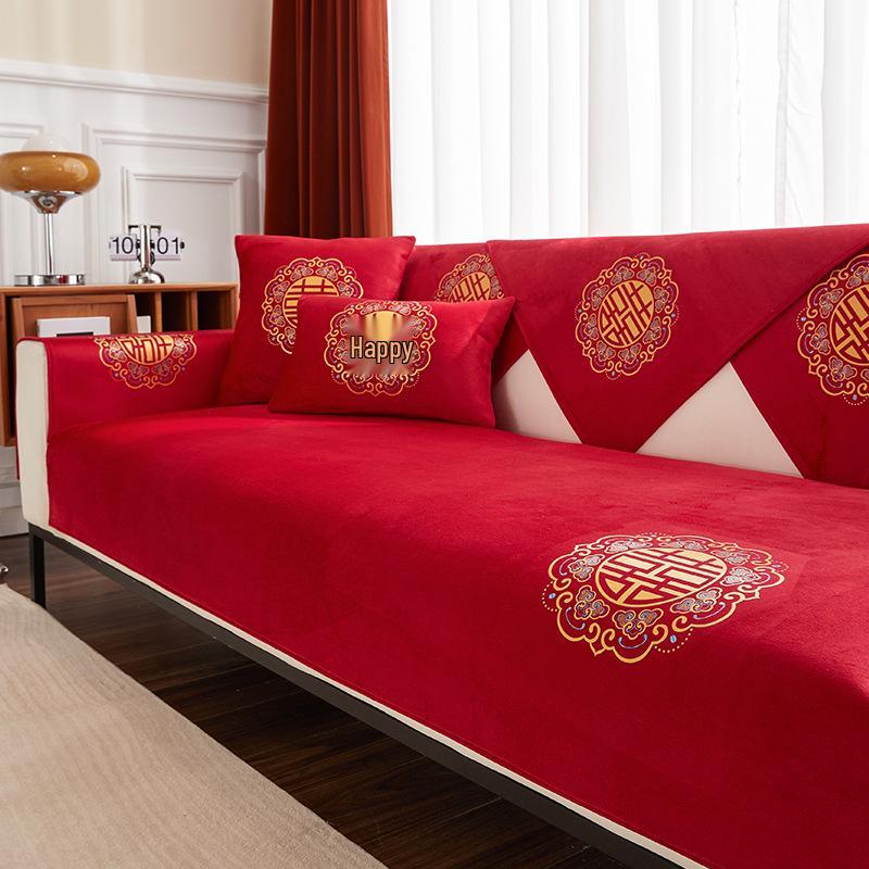 Подушка для дивана из красного бархата «Двойное счастье»: Праздничный китайский стиль, Нескользящий, Всесезонное использование