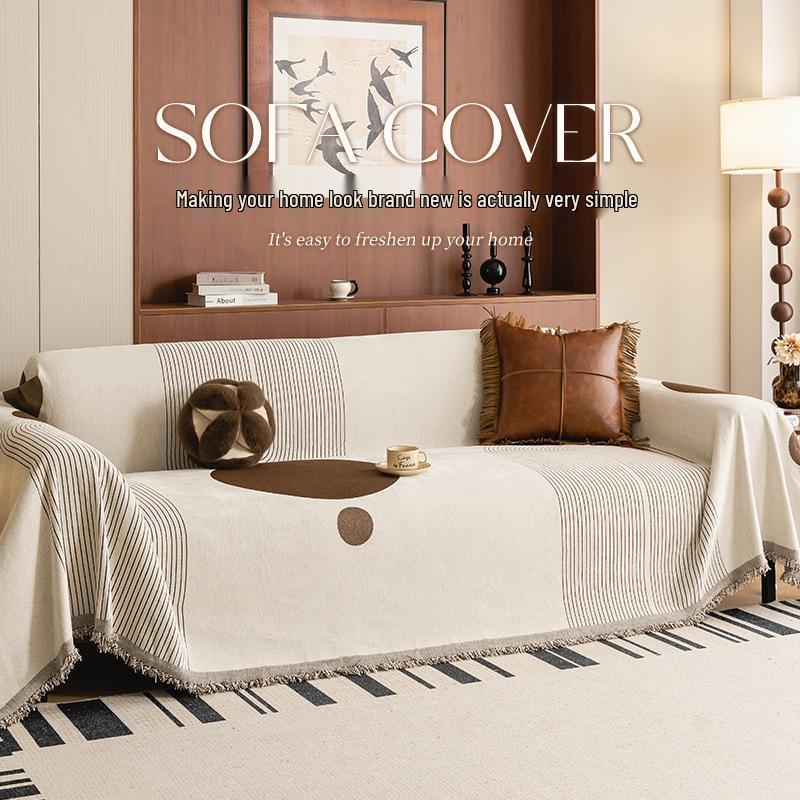 Роскошный летний чехол на диван из шенилла с нескользящим покрытием - Пылезащитная накладка с полной обвязкой