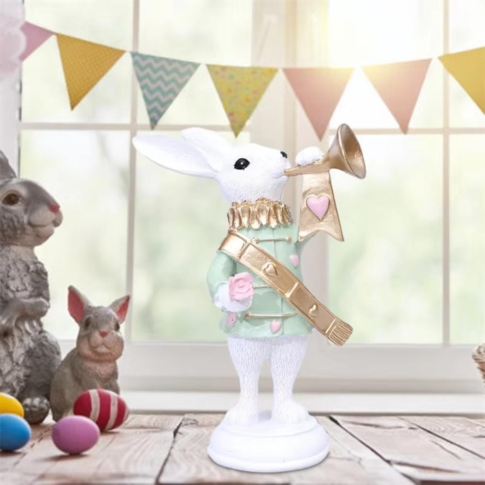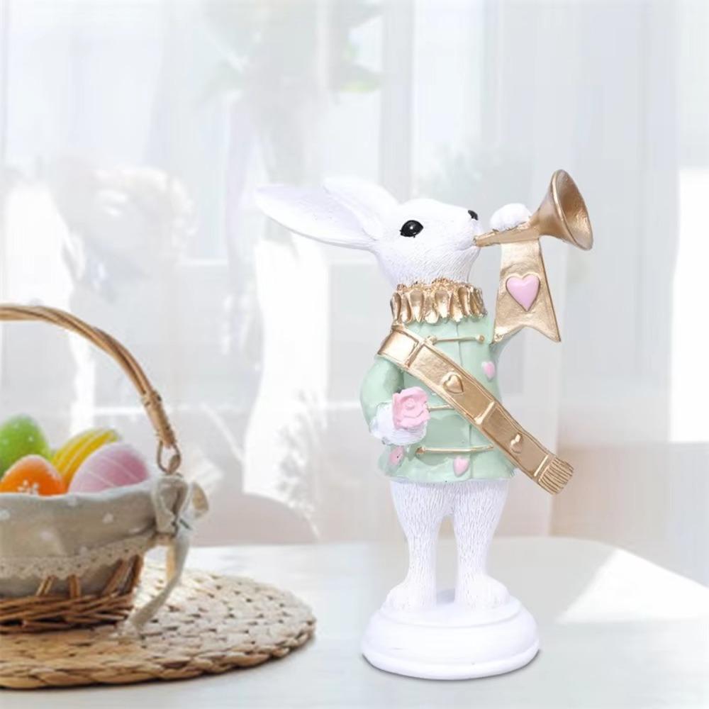 Scepter Trumpet Design Rabbit Statue Ornament Resin Crafts Animal Sculpture Party Gifts