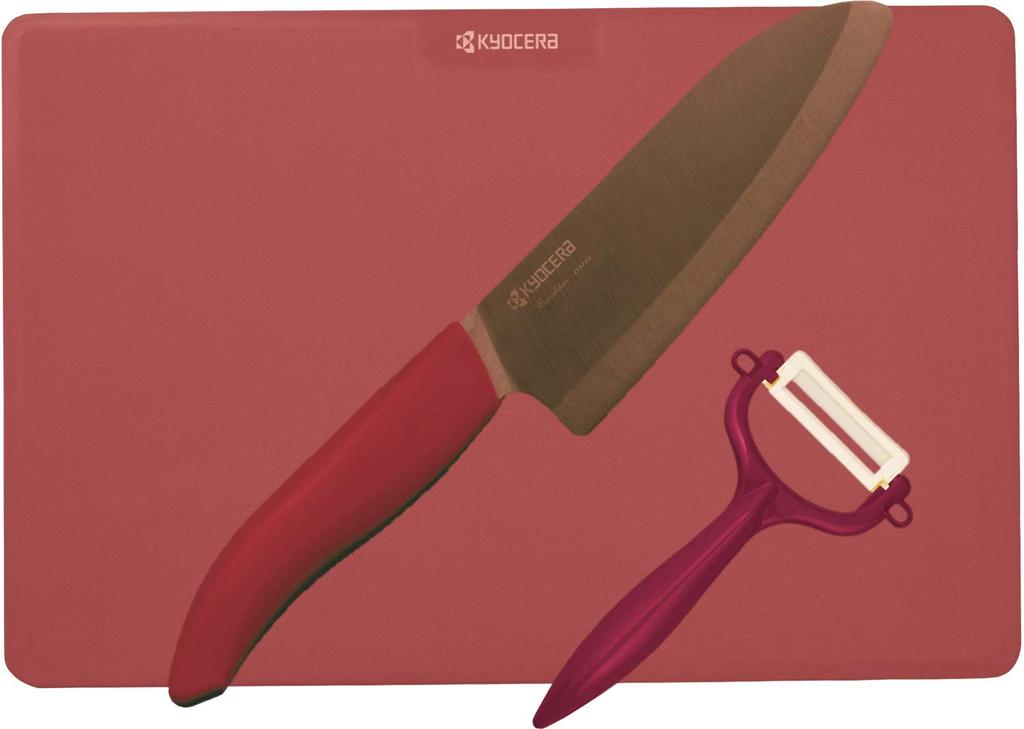 Kyocera Керамическая Кухонная Бордо Сантоку Режущий Керамический Нож Подарочная Упаковка Набор из 3 Предметов, (14см Нож, Овощечистка, Доска) GF-302B-BD
