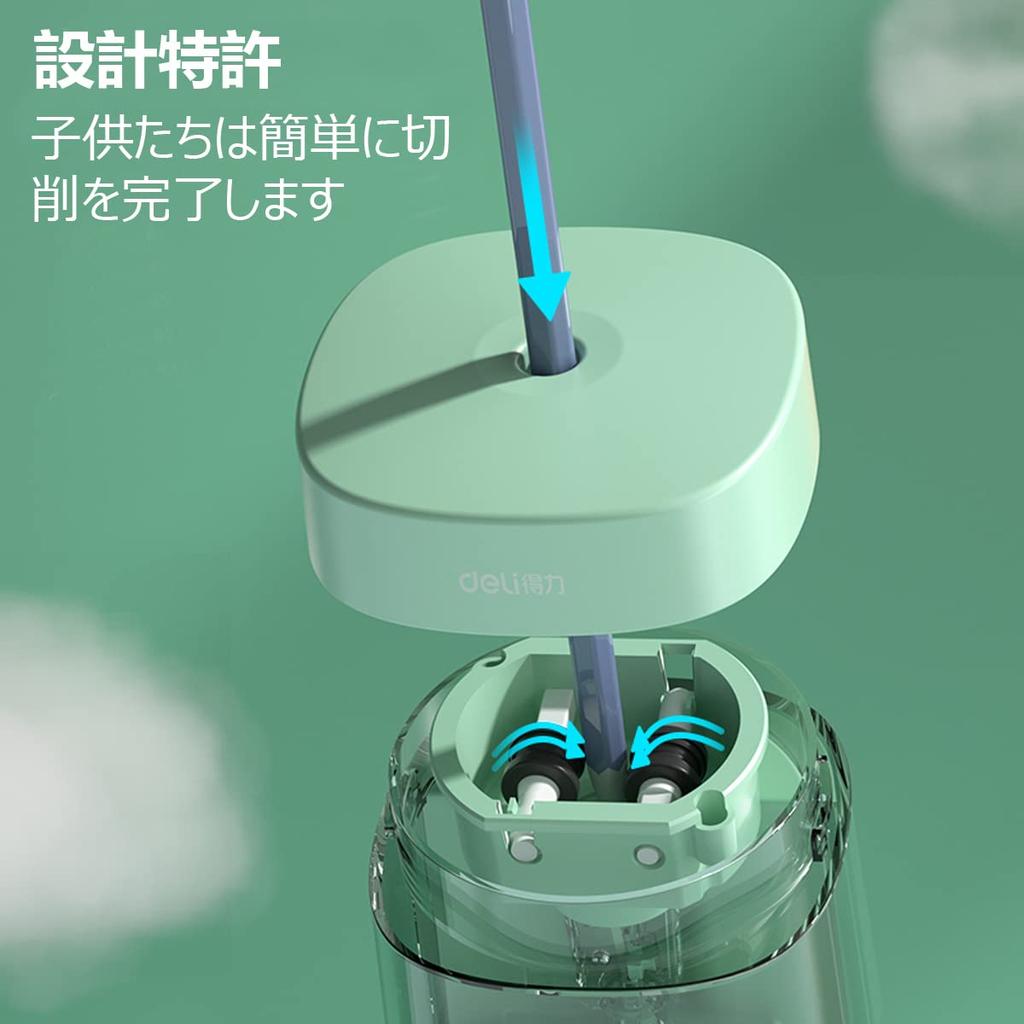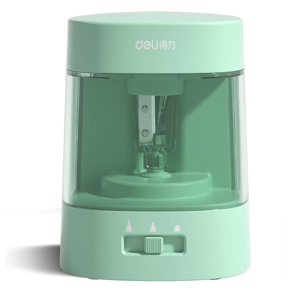 Deli Электрическая точилка 5000 Long на батарейках AA, прозрачная, детский подарок, 3-5 секунд высокоскоростной резки, режет, срок службы, работает, коробка большой вместимости, (зеленый)