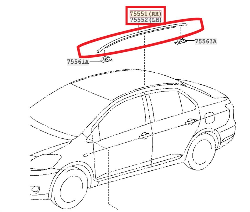 Водонепроницаемый молдинг водосточной планки крыши для TOYOTA YARIS СЕДАН 07-11