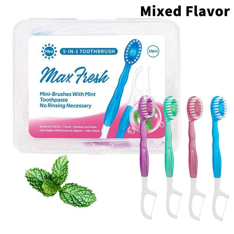 10 шт./коробка Портативная зубная щетка 5-в-1 Зубная нить Зубочистка Для чистки полости рта Одноразовая зубная щетка Для взрослых в деловых поездках