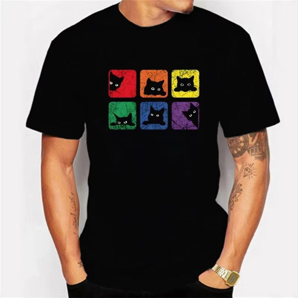 Футболки с коротким рукавом Мужская футболка Гордость Любитель кошек Футболка Топы Графическая футболка Харадзюку Уличная мода Тренд Мужские фирменные футболки