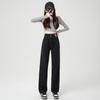Autumn and winter 2025 double-breasted Spice Girl high-waisted jeans women's drape and thin straight-leg pants design sense niche tide — купить товар онлайн с бесплатной доставкой по всему миру!