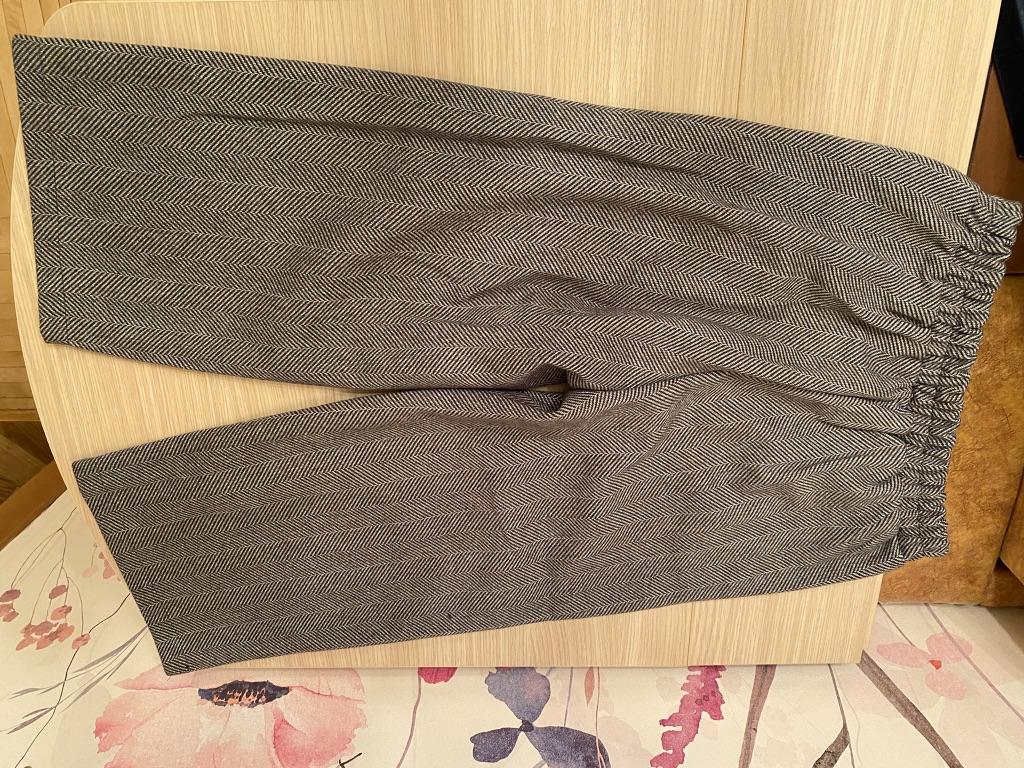 Костюм сплошная синтетика ,прямо чуть ли не стеклянный. Но штанишки сели отлично ,не широкие и не узкие ,по длине тоже отлично.Брала на ОГ 108, ОБ 114 ,рост 157 см.
