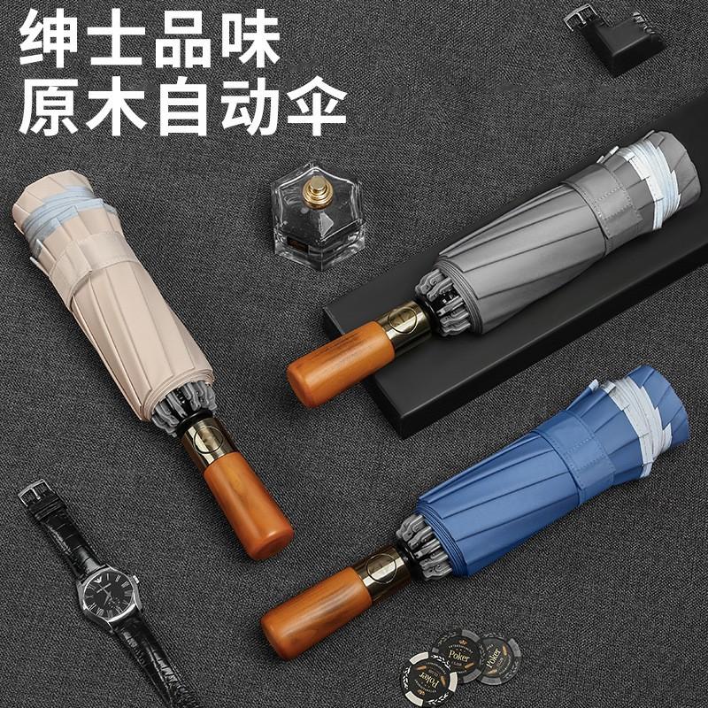 Автоматический складной зонт из массива дерева с окантовкой, светоотражающей полосой, бронзовый матовый, зонт-наоборот