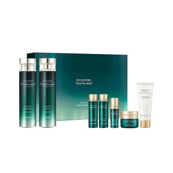 ISAKNOX Age Focus Prime Набор двойного действия из 2 шт. (Тонер 160 мл + 20 мл, Эмульсия 160 мл + 20 мл, Сыворотка 7 мл, Крем 10 мл, Пенка для умывания 40 мл)