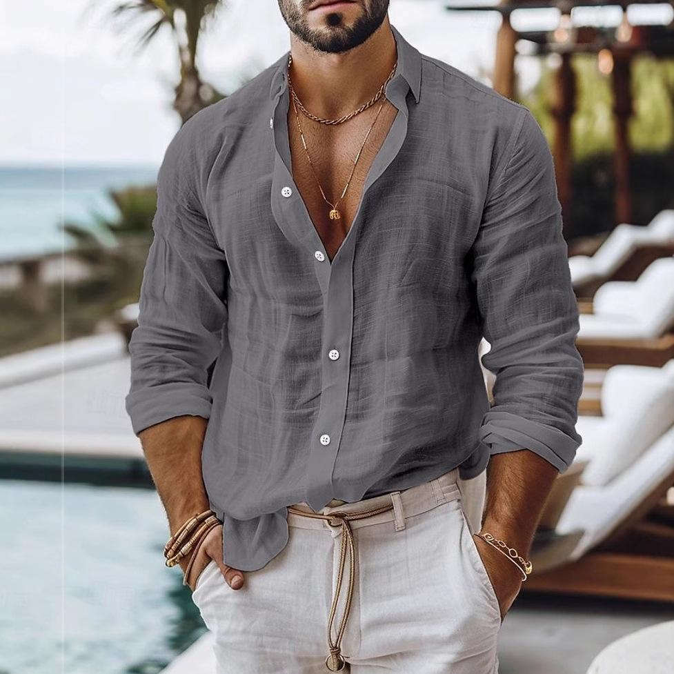 Мужская повседневная рубашка с длинным рукавом темно-серого цвета, свободного кроя, в стиле пляжного отдыха — купить товар онлайн с бесплатной доставкой по всему миру!
