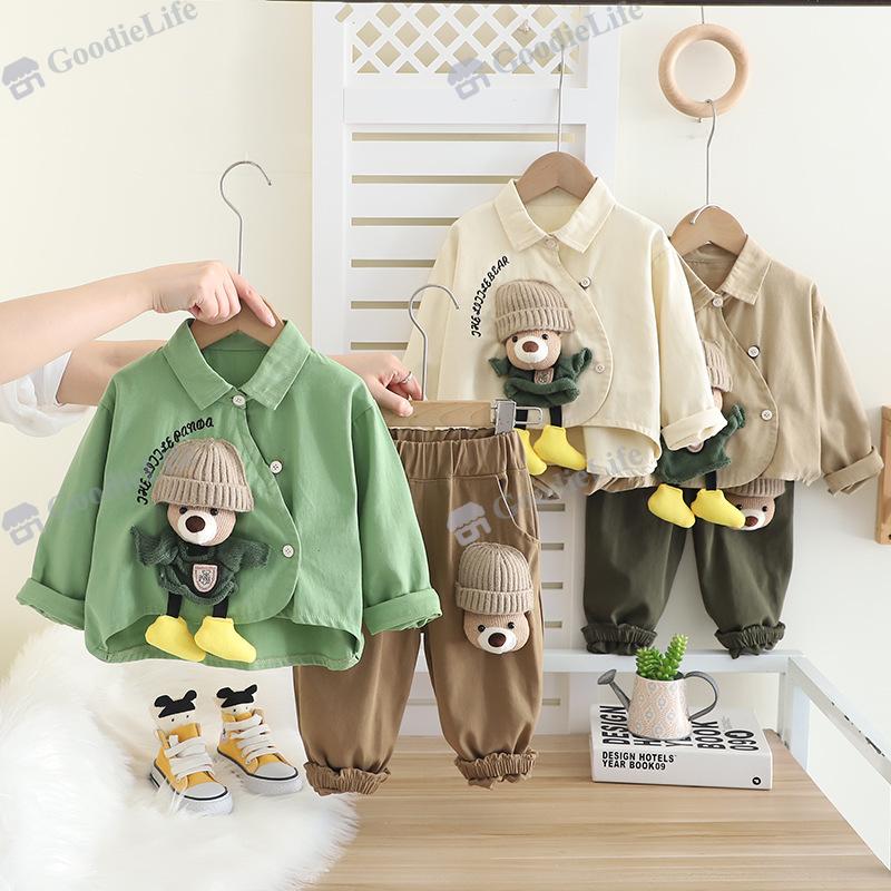Комплект из футболки и штанов «Малыш-медвежонок 2025» – Милый хлопковый весенний наряд для мальчиков-малышей, одежда из 2 предметов с принтом «Мишка Тедди»