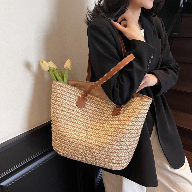 Повседневная вместительная сумка для поездок на работу, плетеная сумка из бумаги, модная полосатая соломенная сумка, женская сумка для весны и лета