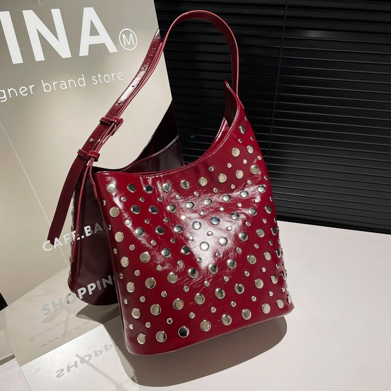 Сумка женская большой вместимости ретро личность трендовая крутая в горошек заклепки женская на плечо мессенджер — купить товар онлайн с бесплатной доставкой по всему миру!