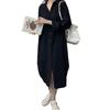 Летняя джинсовая рубашка Seira Длинная Короткая Легкая Однотонная с Элегантным Женским Платьем Офисной Леди, Платье, Платье, Рукав, А-силуэт, Платье, Отложной воротник,