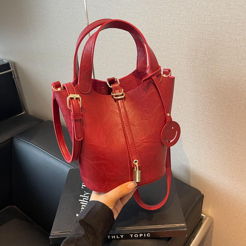 Нишевая ретро сумка через плечо женская летняя новая портативная сумка-ведро с продвинутой текстурой, универсальная сумка-мессенджер для通勤, женская сумка