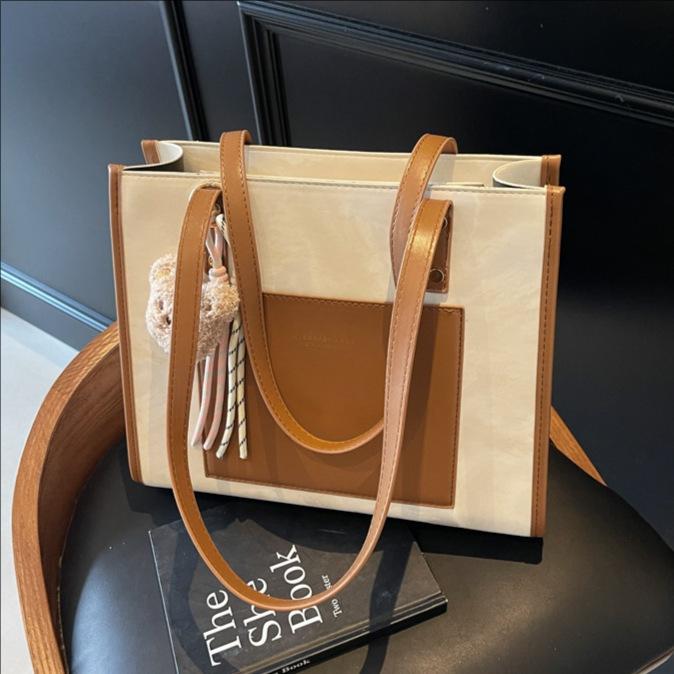 Модная сумка-тоут большой вместимости, женская новая сумка через плечо с цветной контрастной вставкой для поездок на работу