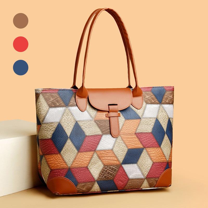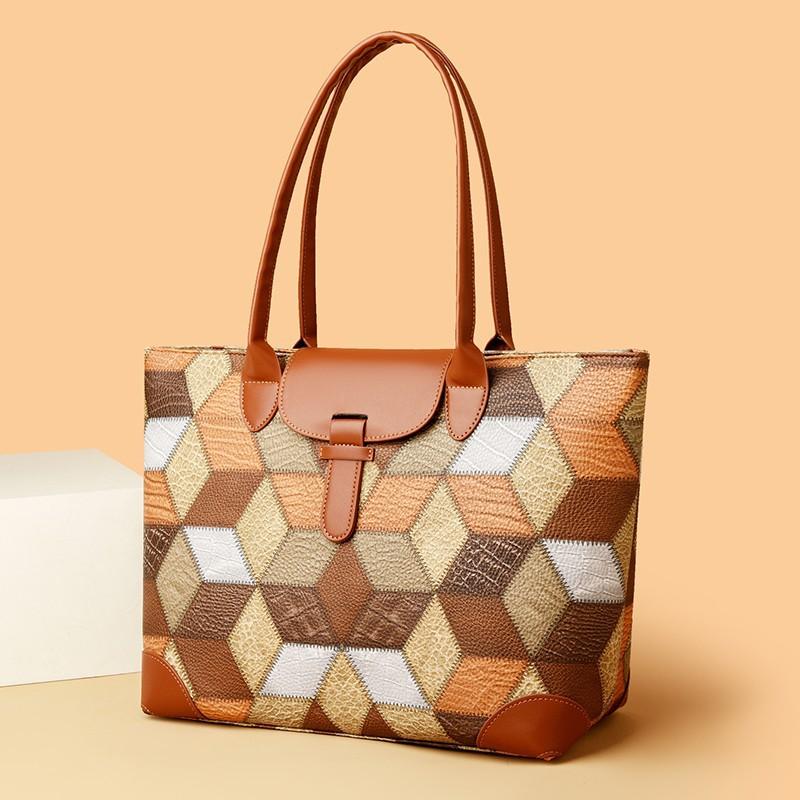 Текстурированная мягкая кожа большая сумка женская новая модная модная вместительная сумка-тоут с цветовой блокировкой сумка через плечо для通勤