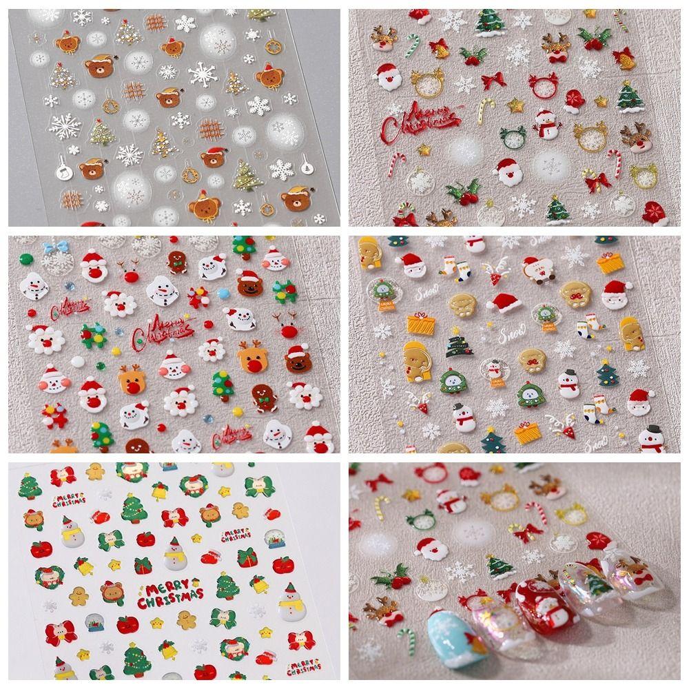 Мультяшные рождественские наклейки для ногтей Дед Мороз Рождественские украшения для ногтей Рождественские наклейки для ногтей Салон маникюра