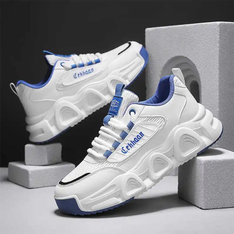 Кроссовки из натуральной кожи на толстой подошве Мужские оригинальные кроссовки для мужчин Серебристая обувь для мужчин Спорт Комфорт Тренд Распродажа