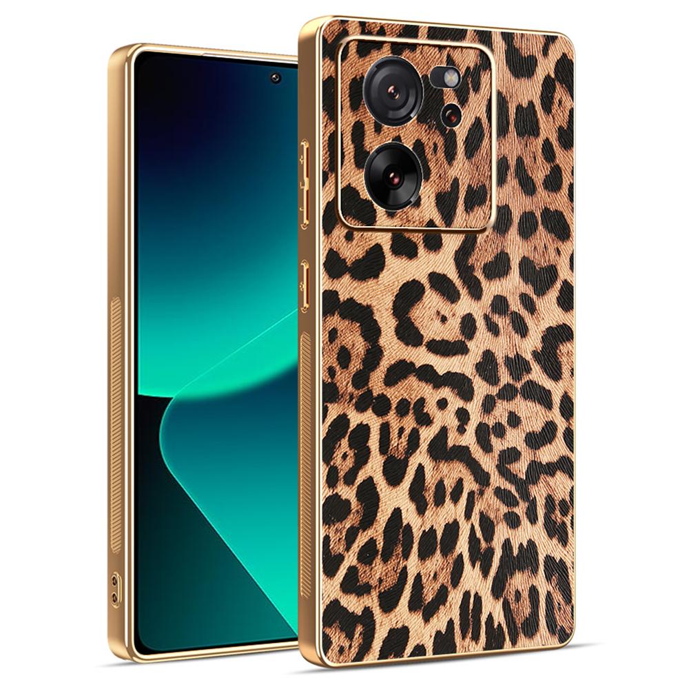 Чехол для телефона для Xiaomi 13T/13T Pro/Redmi K60 Ultra с леопардовым принтом, с покрытием из ПУ кожи, PC+TPU гальваническое покрытие