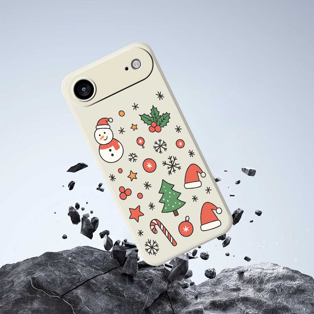 Для iPhone 17 Air Чехол Снеговик и Шапка Санты Печать Рисунка Прямая Кромка ТПУ Задняя Крышка Телефона