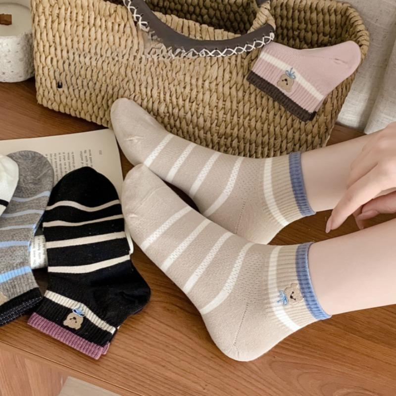 Женские короткие носки в полоску с цветными блоками, весенне-летние, сетчатые, дышащие, хлопковые носки без косточек с медведем, женские короткие носки