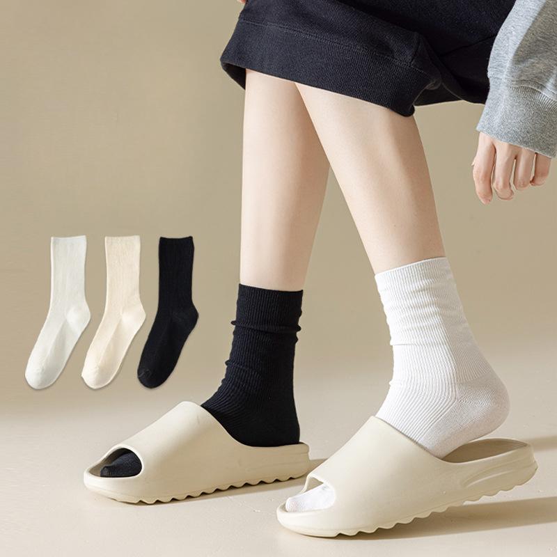 Женские тонкие дышащие носки до середины икры двойной вязки, впитывающие пот, летние черно-белые носки, хлопковые носки