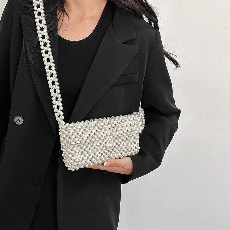 Модная жемчужная сумка лето новая ручная работа бисерная на плечо через плечо женская сумка простой тренд плетеная маленькая квадратная сумка