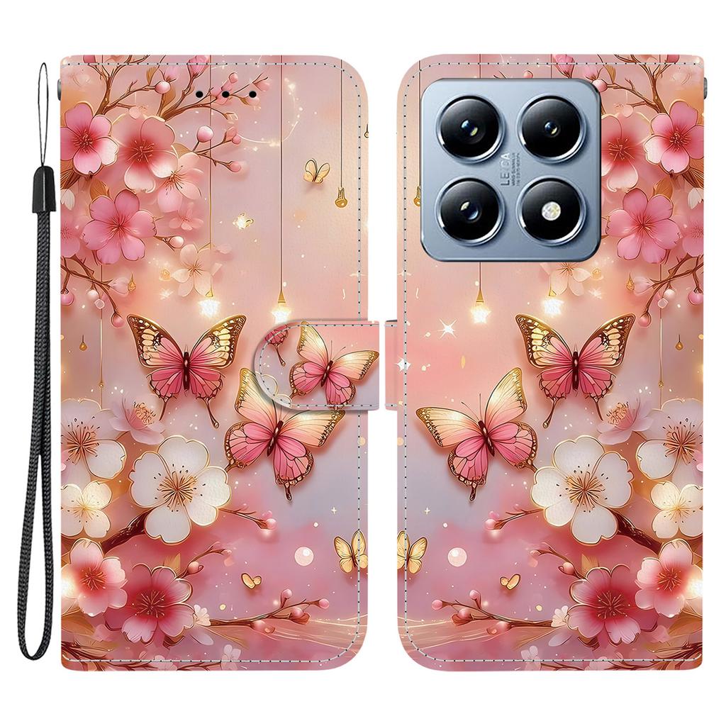 Для Xiaomi 14T Кожаный чехол-подставка Кошелек С рисунком Печать Чехол для телефона с ремешком на запястье