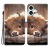 For iPhone 16 Leather Case Stand Wallet Pattern Printing Phone Cover with Wrist Strap