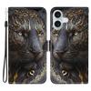 For iPhone 16 Plus Leather Case Stand Wallet Pattern Printing Phone Cover with Wrist Strap