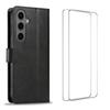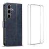 For Samsung Galaxy S24+ Case with 2Pcs Tempered Glass WANLONFENG WN Series Calf Texture Leather Phone Cover Big Cutouts