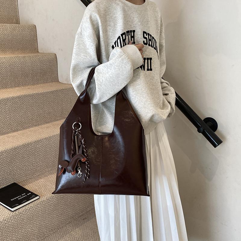 Ретро простая сумка-багет для通勤, женская сумка, осень, новая, большая вместимость, простая плечевая сумка-тоут