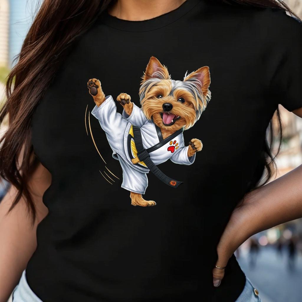 Футболки с принтом боевых искусств йоркширского терьера, с коротким рукавом, с круглым вырезом, для отдыха, весна и лето, женские футболки