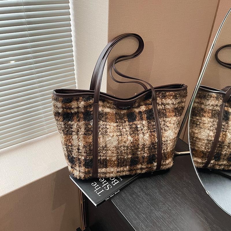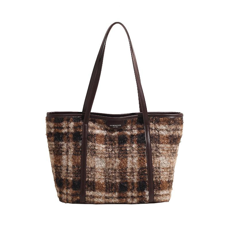 Осенне-зимняя шерстяная сумка большой вместимости, женская новая универсальная сумка на плечо для поездок на работу, сумка-тоут для выхода в свет